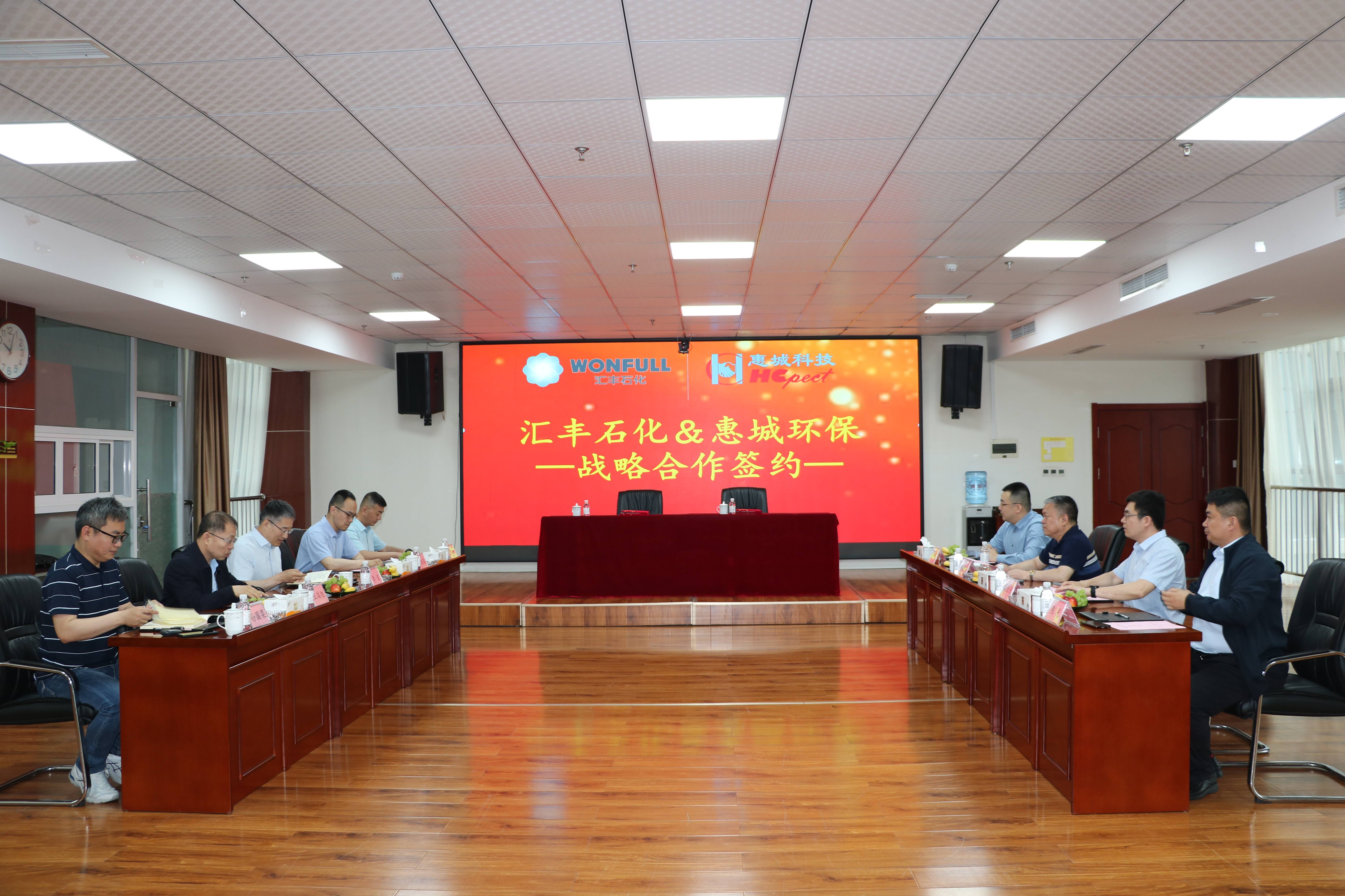 為進一步推動綠色循環(huán)經(jīng)濟高質(zhì)量可持續(xù)發(fā)展,加快先進環(huán)保技術(shù)成果轉(zhuǎn)化落地,5月18日,青島惠城環(huán)?萍技瘓F股份有限公司(以下簡稱“惠城環(huán)!保┡c山東匯豐石化集團有限公司(以下簡稱“匯豐石化”)戰(zhàn)略合作簽約儀式在惠城環(huán)保研發(fā)大樓418會議室隆重舉行。匯豐石化總裁李波、總工程師王瑞旭,惠城環(huán)保創(chuàng)始人張新功、總經(jīng)理林瀚等出席簽約儀式。