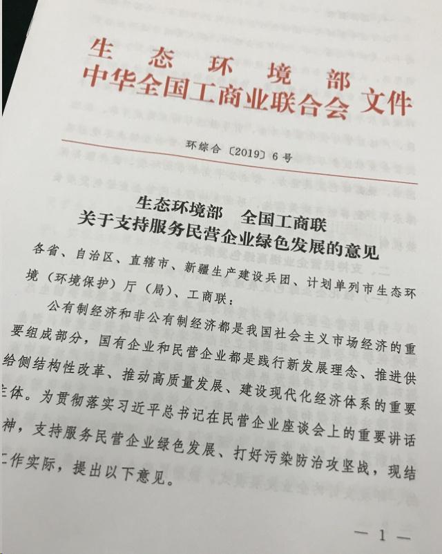 今天,生態(tài)環(huán)境部和全國工商聯(lián)簽署了“關于共同推進民營企業(yè)綠色發(fā)展 打好污染防治攻堅戰(zhàn)”的合作協(xié)議,聯(lián)合出臺《關于支持服務民營企業(yè)綠色發(fā)展的意見》,將通過健全市場準入機制、完善環(huán)境法規(guī)標準、規(guī)范環(huán)境執(zhí)法行為、強化科技支持服務、完善環(huán)境經(jīng)濟政策措施,支持民營企業(yè)提高綠色發(fā)展水平、營造公平競爭市場環(huán)境。